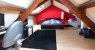 A l’étage, elle dispose de trois chambres à coucher dont deux communicantes et sous les combles aménagées une grande chambre à coucher de +/- 25m2.