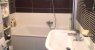 De l’autre côté, le hall dessert 2 chambres à coucher, une salle de bains avec baignoire, vasque et WC. Un WC séparé avec petit lave-main.